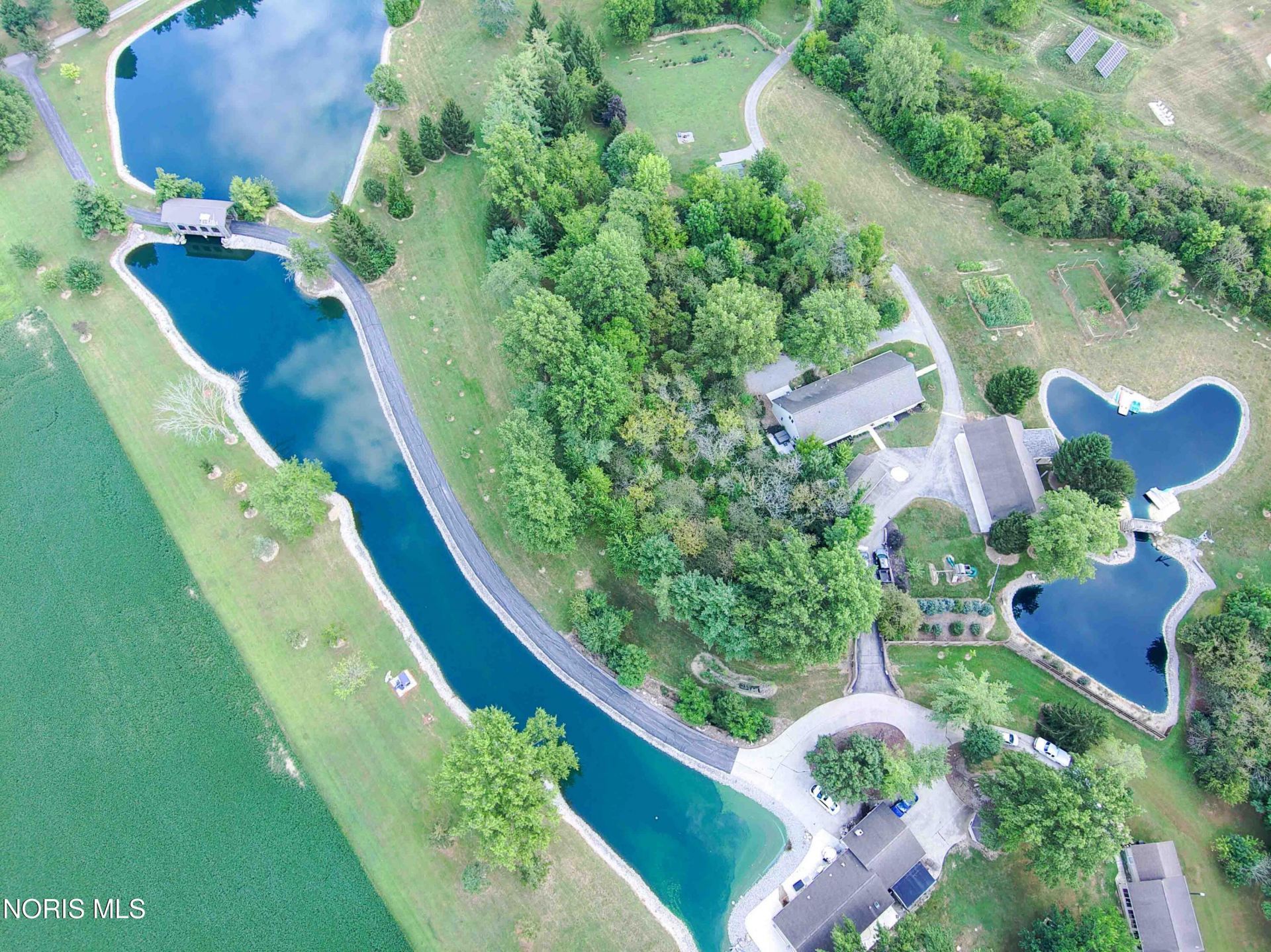Escape to your own private retreat on 10+ scenic acres surrounded by mature trees, offering a rare blend of tranquility, recreation, and versatility. Whether you envision a hobby farm, a peaceful getaway, a perfect staycation spot, or an entertainer's dream property, this one delivers an unmatched lifestyle. Enjoy private ownership of a portion of a 1.5+ acre pond-perfect for fishing, paddle boating, or relaxing evenings by the water and a view of a picturesque, covered bridge. The property also features its own private pond complete with a beach, waterslide, fire pit area, and pavilion ideal for relaxed seating, outdoor dining or entertaining. A spacious, heated outbuilding with full bath, kitchenette, and four garage bays provides exceptional space for social gatherings, hobbies, or storage. Combined with the main two-car garage (attached to the home) and an additional detached two-car garage, the property offers a total of eight garage bays. The main residence offers over 3,000 square feet of thoughtfully designed living space. Cathedral ceilings and a dramatic floor-to-ceiling fireplace anchor the open-concept living area, while a loft and catwalk overlook the space below. The spacious kitchen features quartzite countertops, a large island with seating, and stainless-steel appliances. The formal Dining Room is perfect for household gathering or entertaining. The home includes 3 full bathrooms, 3 bedrooms with an additional flex space for a possible 4th bedroom, office, or den, as well as a loft bonus room. The mail-level primary suite boasts a private patio complete with a hot tub. Two additional, covered patios provide the perfect setting for morning coffee or outdoor dining. A guest cottage sits secluded from the main house. It offers additional living space with its own combined kitchenette/living area, 2 bedrooms, a full bath, and dedicated outdoor fire pit area. With its secluded setting and access from the property's second driveway entrance, it provides flexibility for guests, extended stays, or potential income opportunities. This unique property combines natural beauty, functional space, and exceptional amenities, creating a one-of-a-kind opportunity to live, relax, and entertain all in one place.