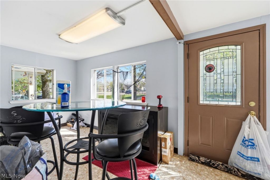 Investors take notice! This charming duplex includes a primary suite that has bedrooms on the second and third floor and the tenant suite with its own side entry. The front entry opens to a delightful sunporch and spacious living room with wall to wall carpeting and a decorative electric fireplace. The formal dining room has built in cabinetry and window seat. The eat-in kitchen (15x12) includes the range and refrigerator and has lower level and side door access. The primary bedroom is found off the dining room with hardwood flooring and its adjoining bathroom. Upstairs, there is a second bedroom (12x10) with a ceiling fan and the third floor offers another spacious bedroom (15x12). The tenant suite is on the second floor with side door access. There is an eat-in kitchen, living room, sitting room or den, one bedroom and a full bath. Each side has its own private access to the basement and the first floor unit includes the washer and dryer. There are two furnaces, two separate hot water tanks and gas meters. A large two car garage and fenced yard complete this accommodating duplex. The convenient location close to highways, shopping and downtown Cleveland makes this a fantastic rental investment! No showings before contract.