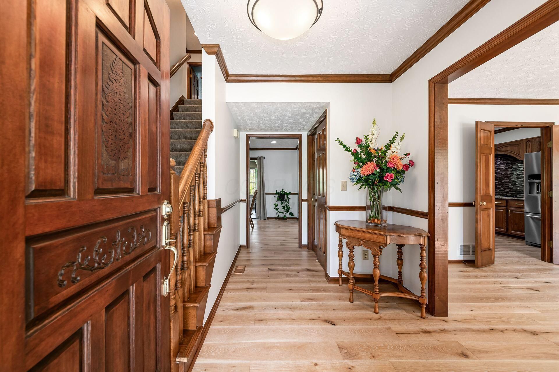 Fantastic end of cul de sac location backing to trees! This beautifully maintained home has all the space you need, including a 3 car sideload garage! Step up to the covered front porch and on to new hardwood flooring. The office has built in shelving and the huge granite island kitchen opens to the dining room, eating space and vaulted great room. The screened in porch and the back deck are the perfect places to enjoy warm summer evenings-bug free! Upstairs are four nice sized bedrooms and three full baths plus a loft ideal for a workout space or kids playroom. Main level utility space. The lower level is wide open and ready for your finishing touches! See A2A for mechanical updates. Still time to be in for the Memorial Tournament! Muirfield has 29 miles of private bike paths, 2 pool and tennis facilities, one just a half mile from this home. 6 hole, Par 3 golf course close by!